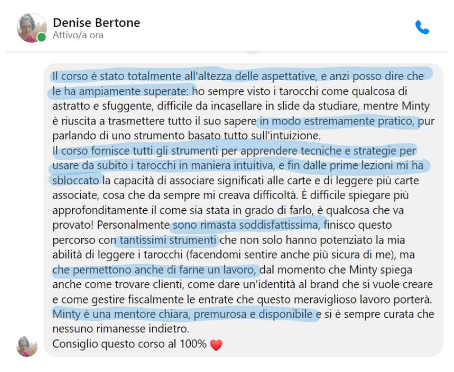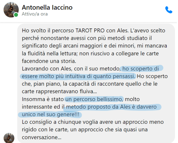 Negli ultimi anni ho aiutato decine di studenti a trasformare il loro modo di leggere i Tarocchi: da interpretazioni rigide e incerte, a letture fluide, accurate e professionali.